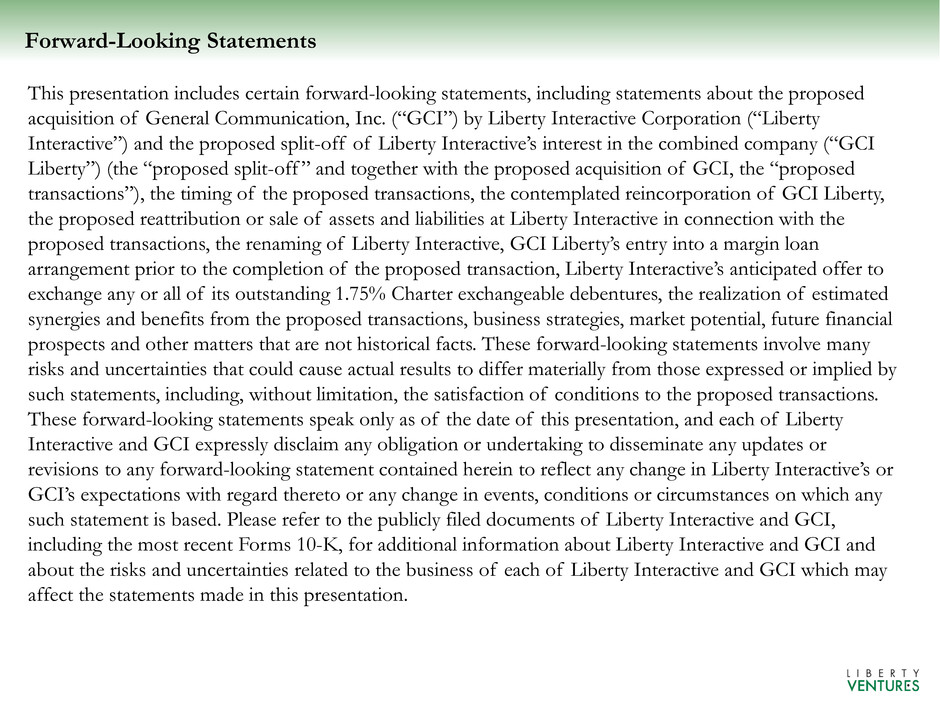 Nothing in this presentation shall constitute a solicitation to buy or an offer to sell shares of GCI Liberty,